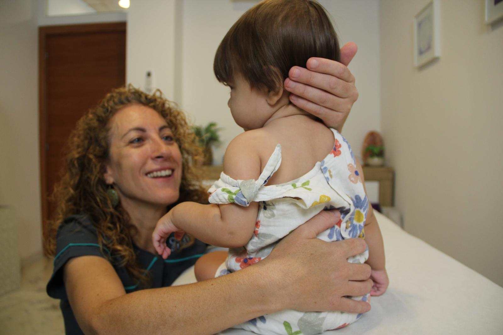 La primera sesión a un bebé puede realizarse incluso al poco tiempo de nacer: se trata de una sesión de medida preventiva de posibles alteraciones y enfermedades que pueden llegar a manifestarse más adelante. Se acompaña al cuerpo a reubicarse, si de forma natural no lo ha hecho, puesto que sino, las estructuras se organizan en función de las tensiones que haya. Estas tensiones pueden surgir a partir del parto, o si ha habido alguna compresión en la barriga de la madre para poder adaptarse durante el embarazo, etc. Si no se reubican posteriormente, pueden dar posibles desequilibrios en algún sistema, incluso hasta la edad adulta.